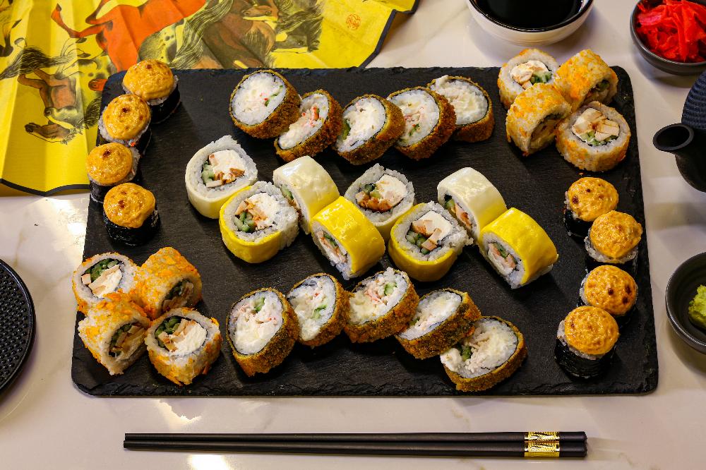 Düyü, nori, xiyar, pendir, toyuq, çipsi