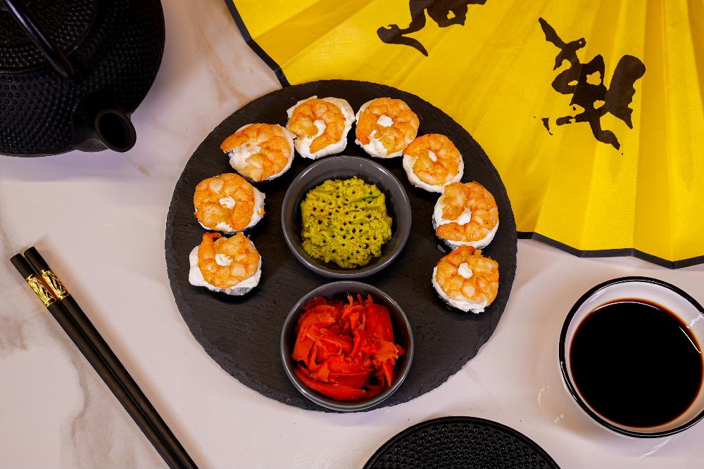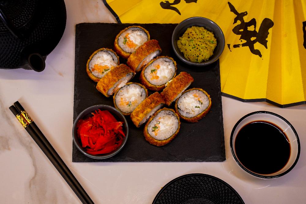 Düyü, nori, pendir, krevetka, xüsusi sous