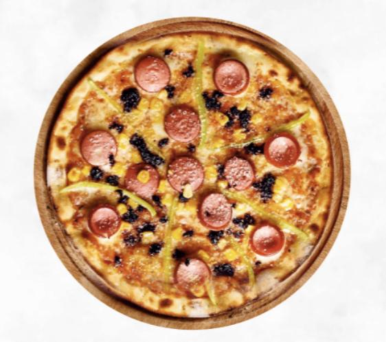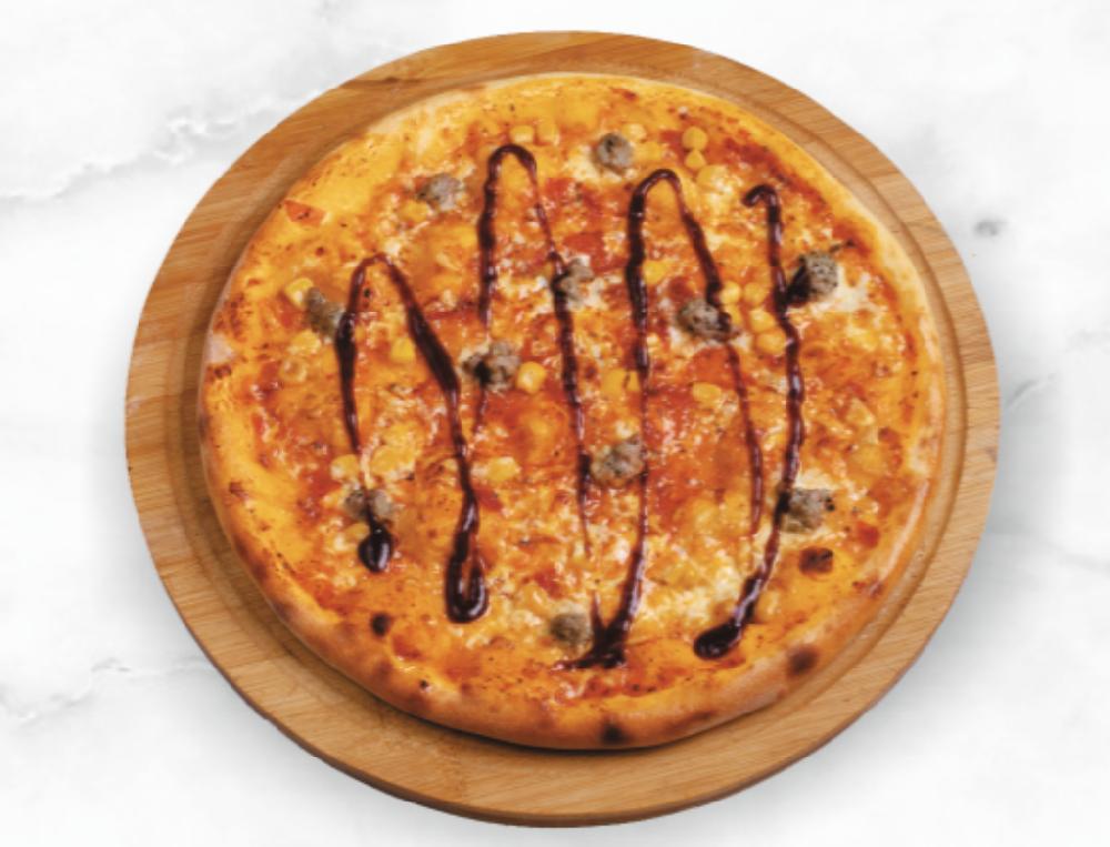 A uniquely Eastern-style pizza topped with keba...