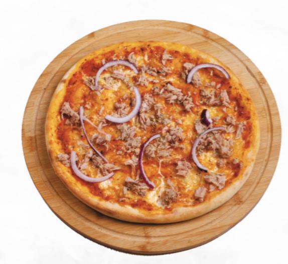 A light and tasty pizza topped with tuna fish, ...