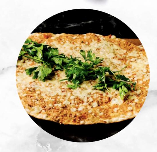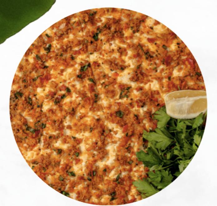 A delicious oven-baked lahmacun topped with min...