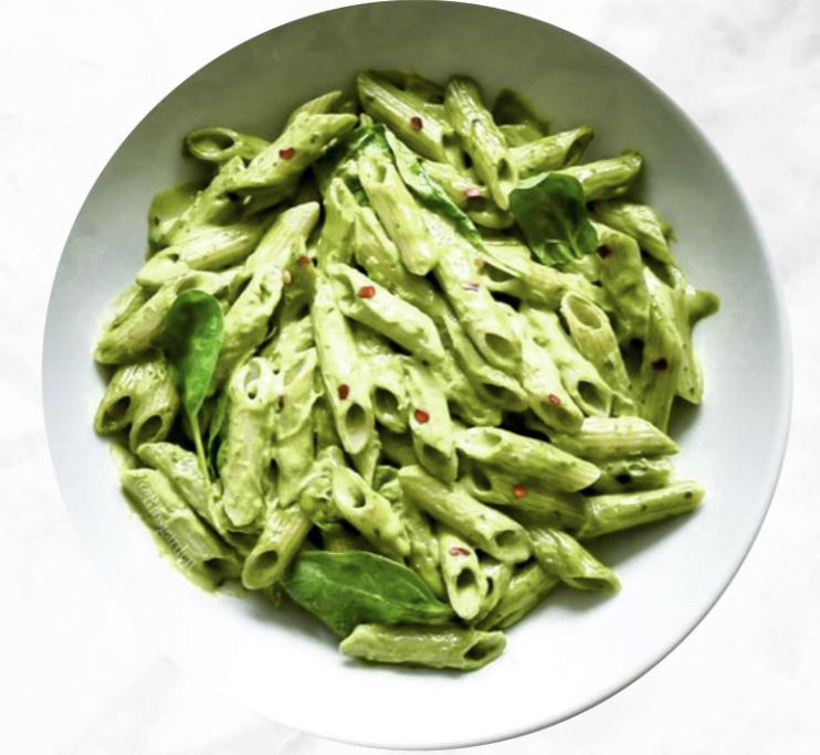 A flavorful pasta dish made with spinach, chick...