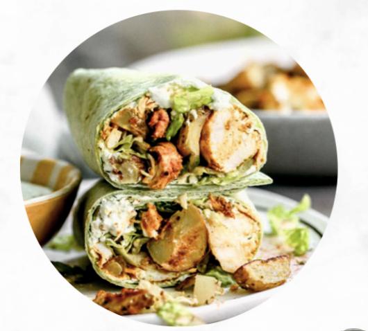 Marinated chicken wrapped in soft lavash with f...