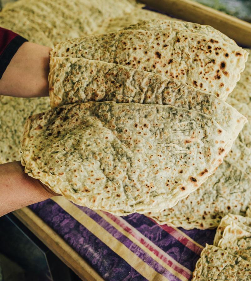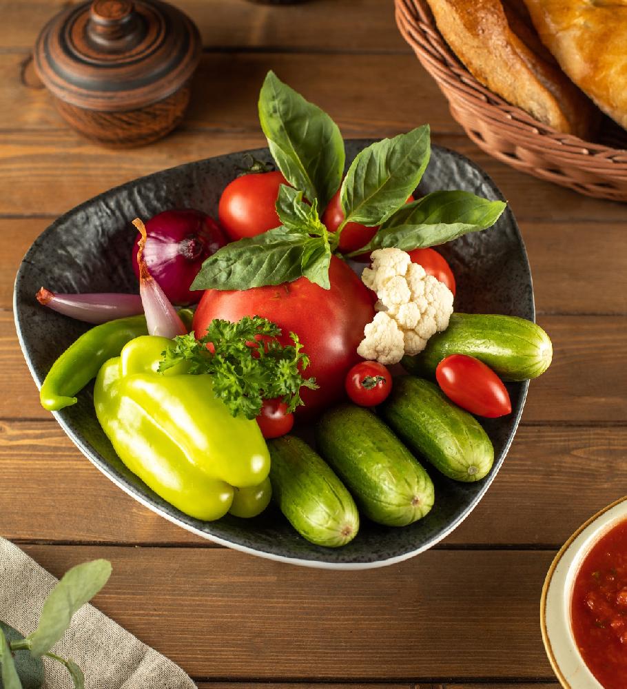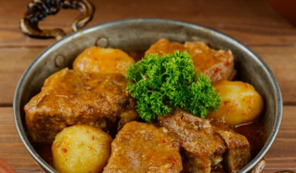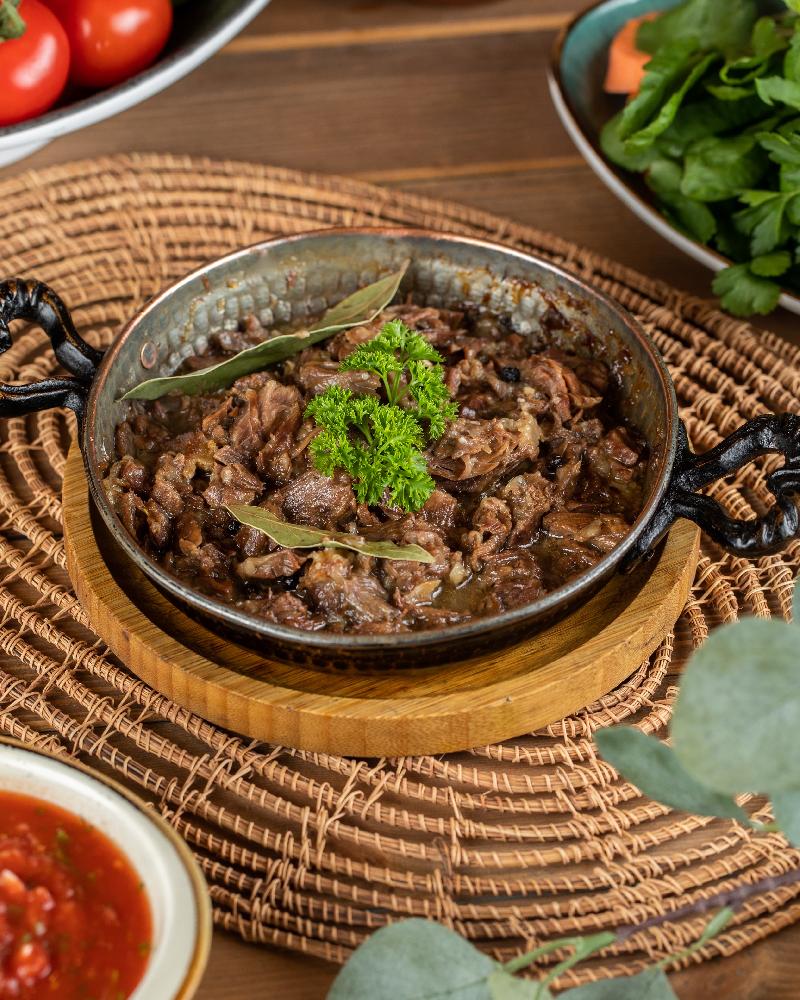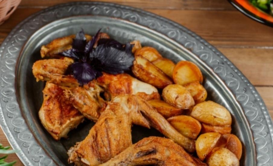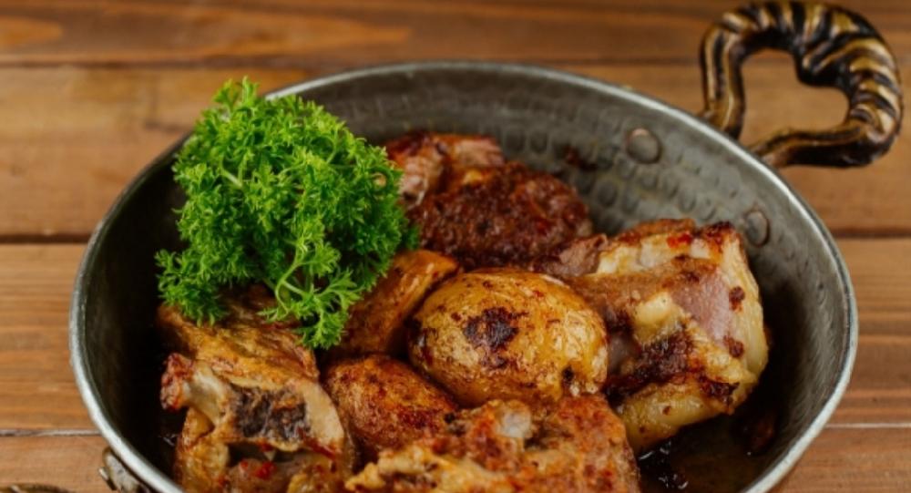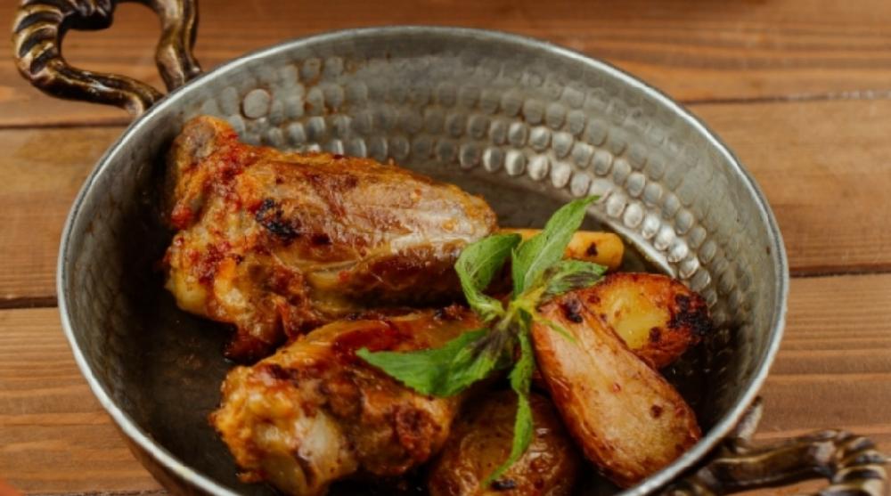 Sobada bişmiş kiçik kartoflar, rəngli bibərlər, soğan və xüsusi ədviyyatlar
