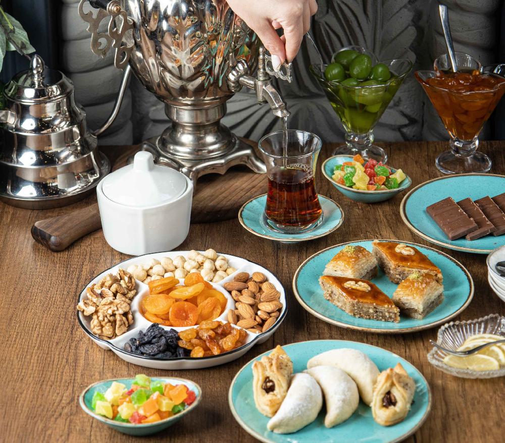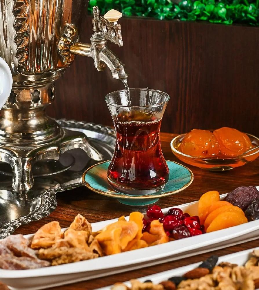 Samovar. Alpen gold, snirkers şokolad, qoz, ki...