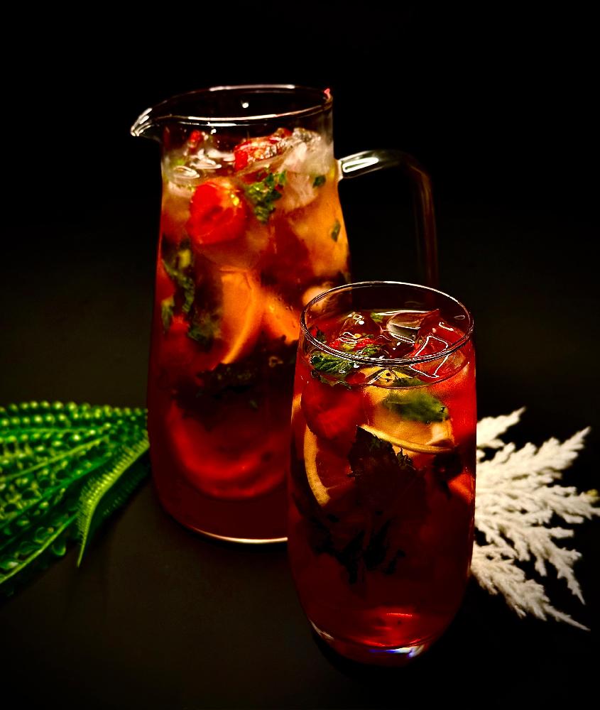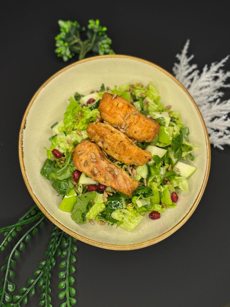 toyuq əti, nar, xiyar, yaşıl alma, qarışı...