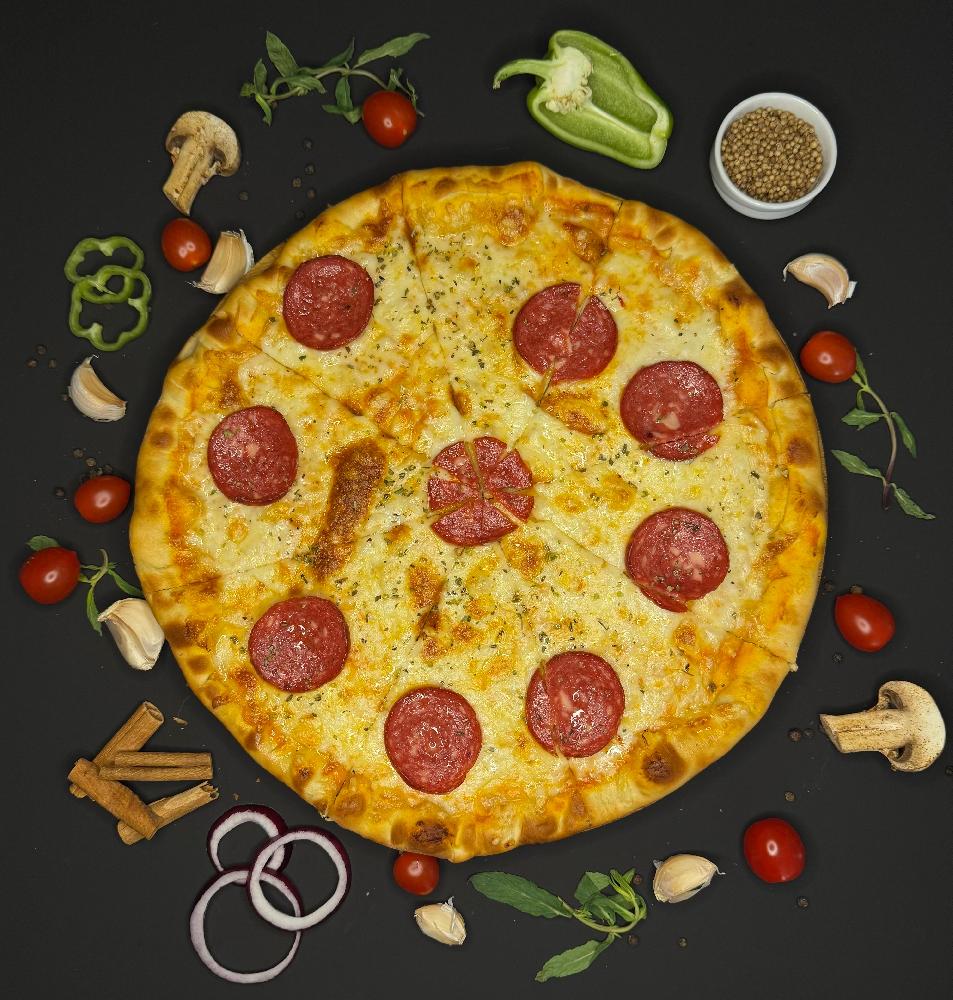 salyami kolbasa, mozzarella pendiri, oreqano, p...