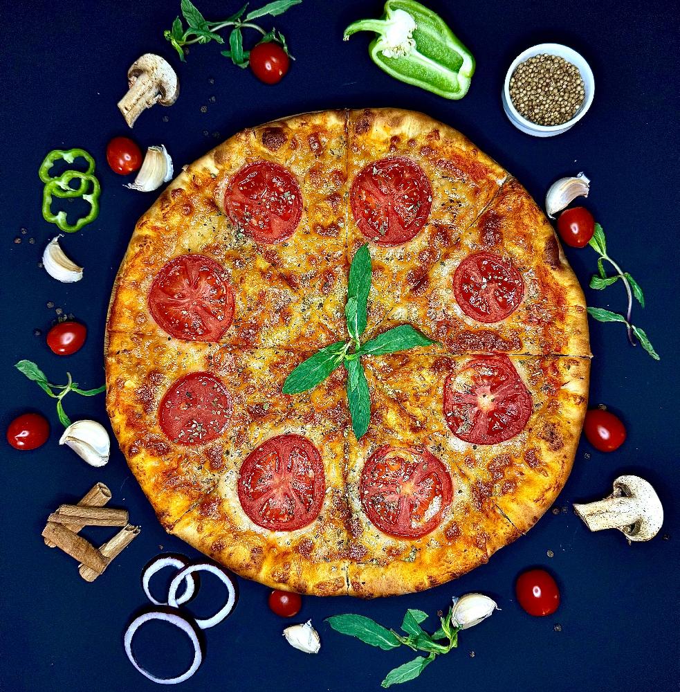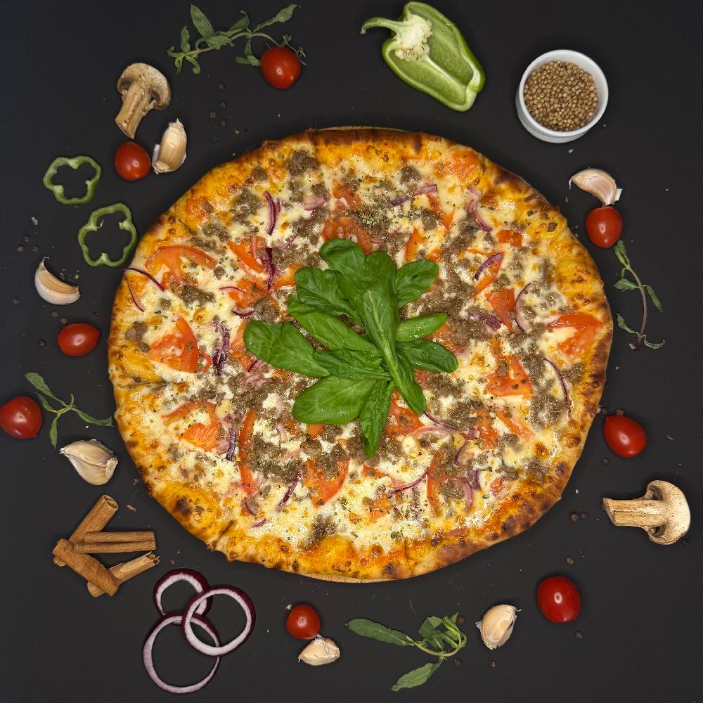 Mozzarella pendiri, oreqano, pomidor, pizza sousu