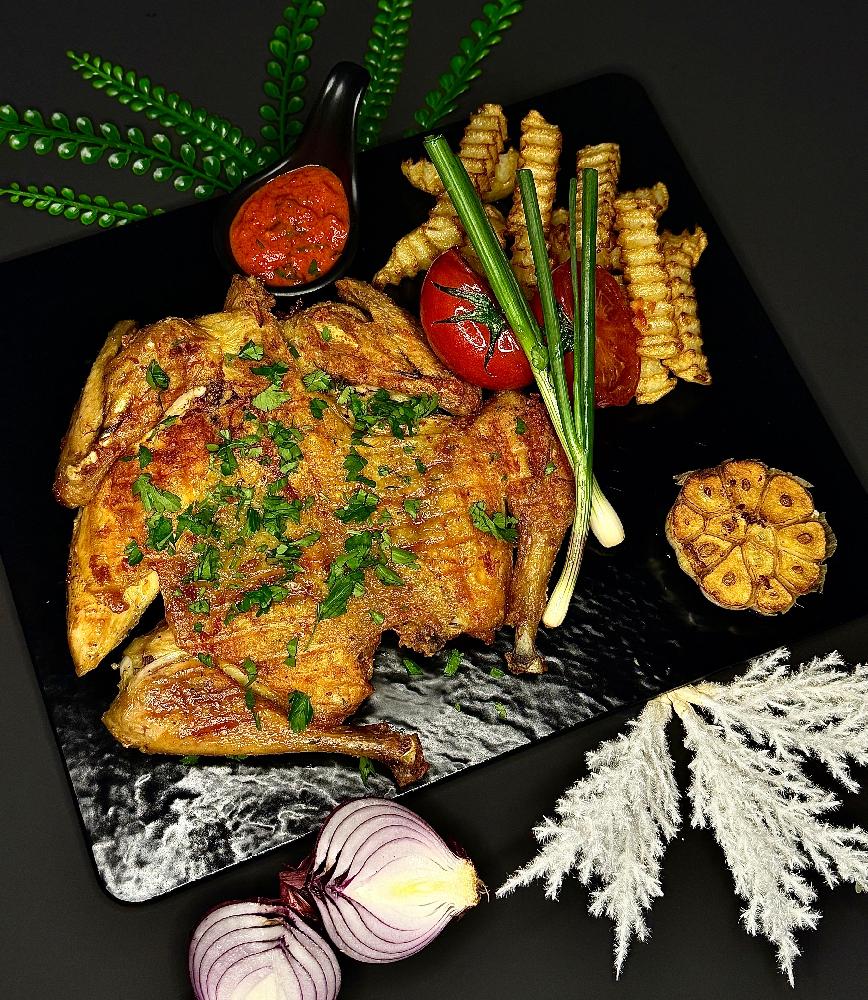toyuq file, qarğıdalı, qırmızı soğan, mo...