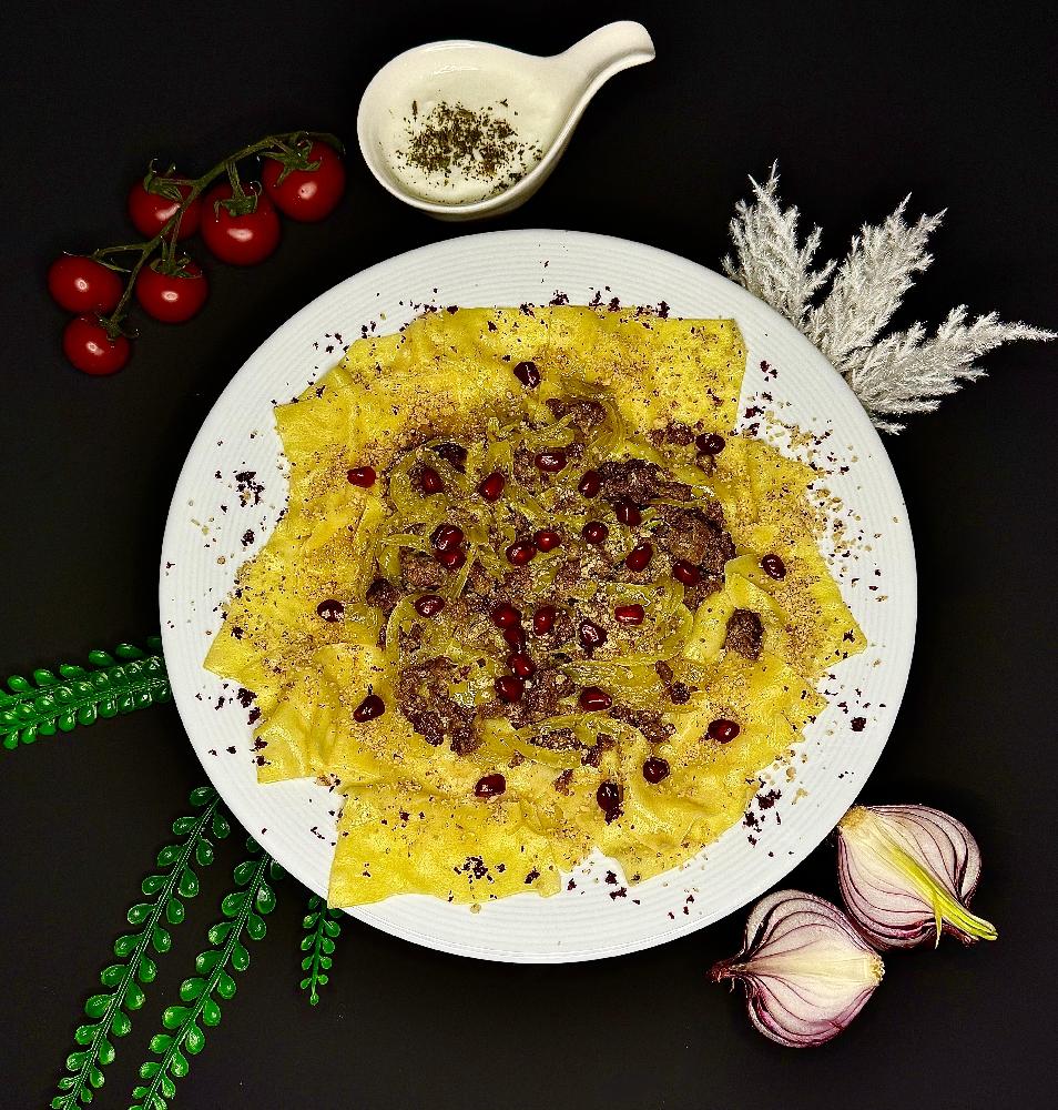 mal əti, xəmir, quru nanə, sirkə