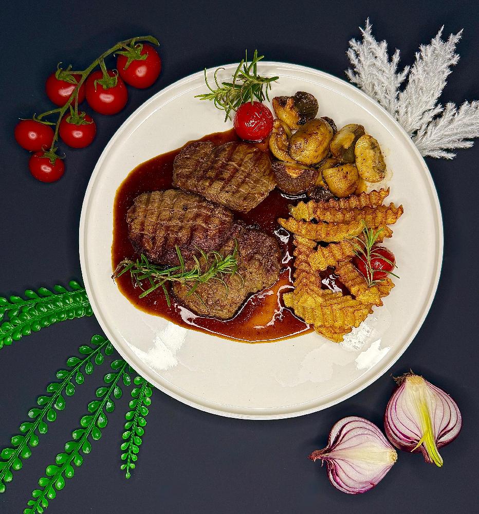 toyuq filesi, mal əti farşı, göbələk, qa...