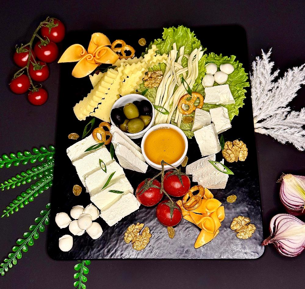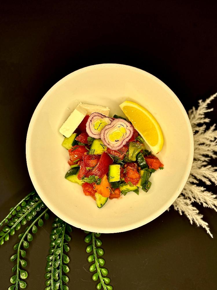 pendir, xiyar, pomidor, soğan, limon suyu