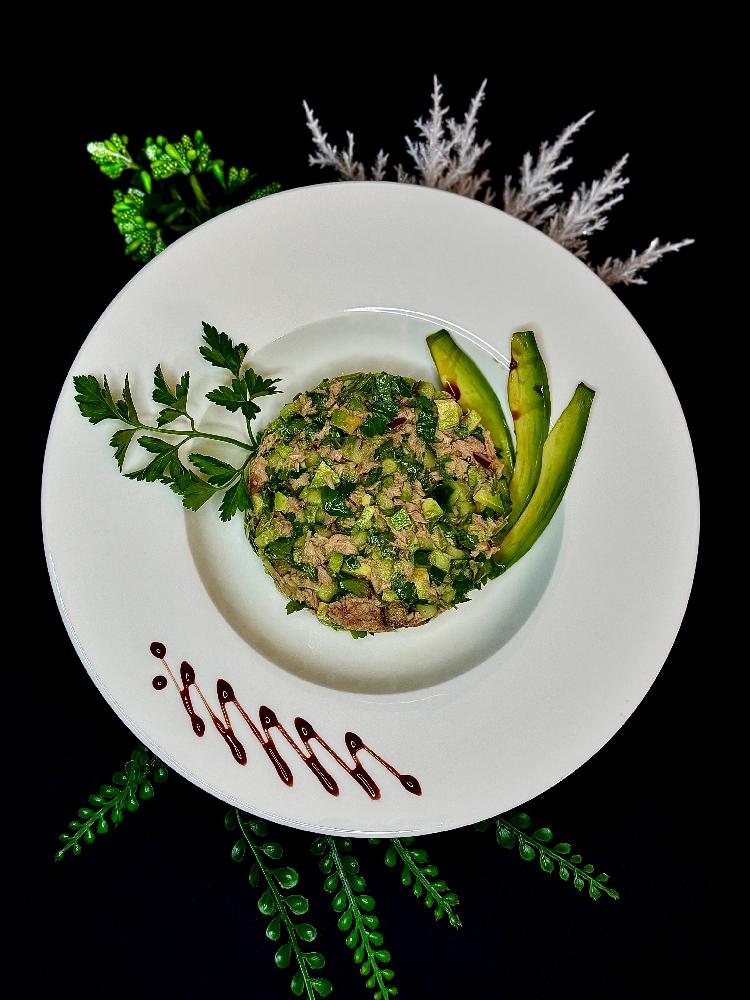 avokado, tuna balıq, qırmızı soğan, xiyar,...