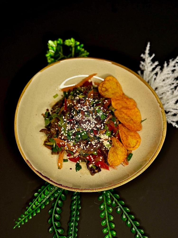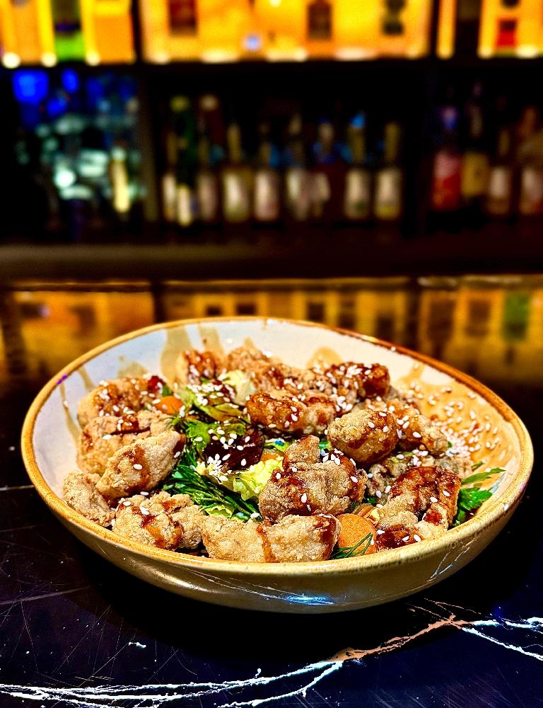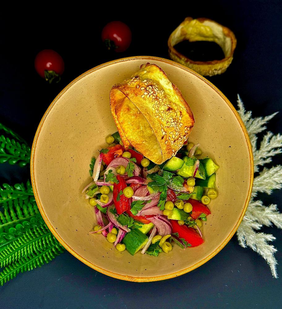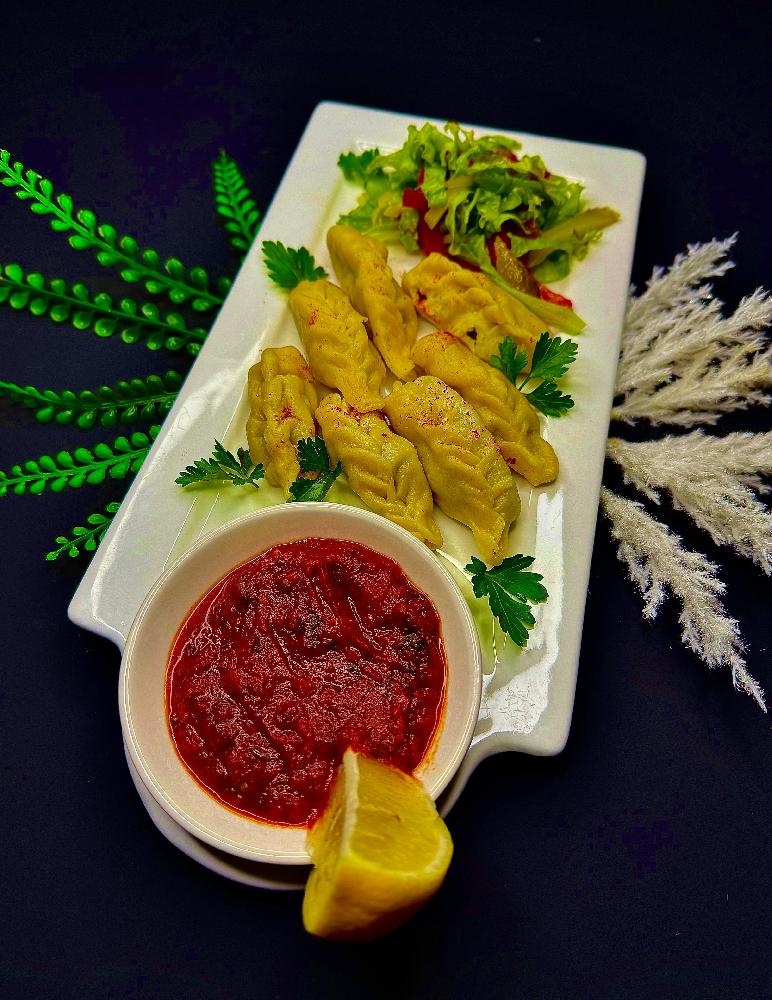 Düşbərə, toyuq şnitzel, krab salatı, çö...