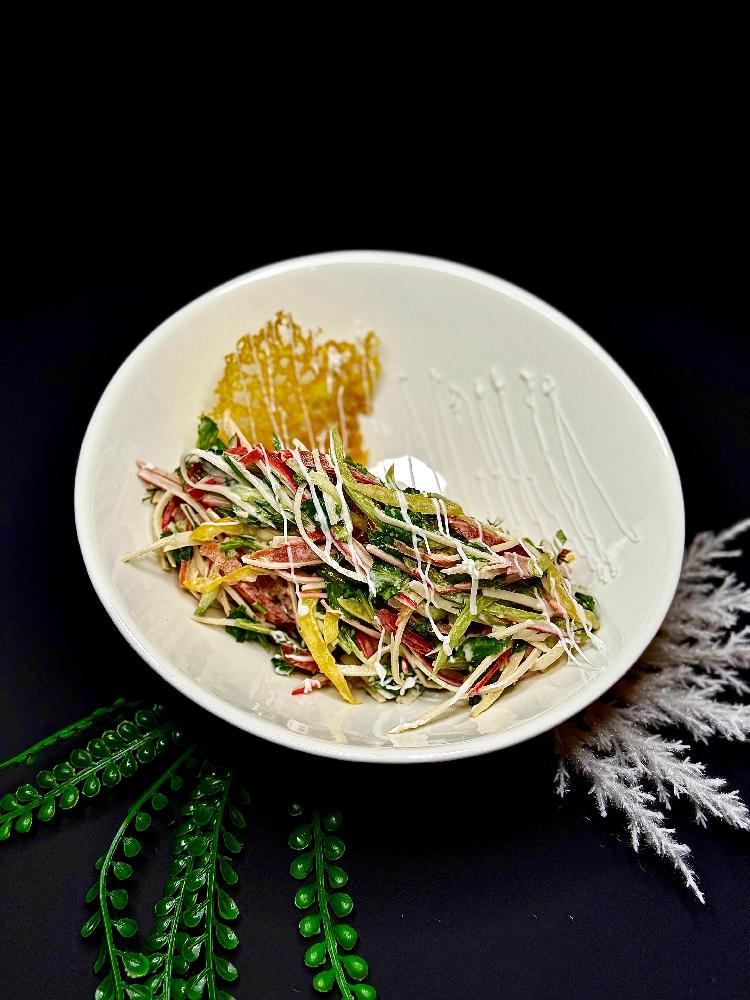 rəngli bibər, xiyar, pomidor, mayonez, krab �...