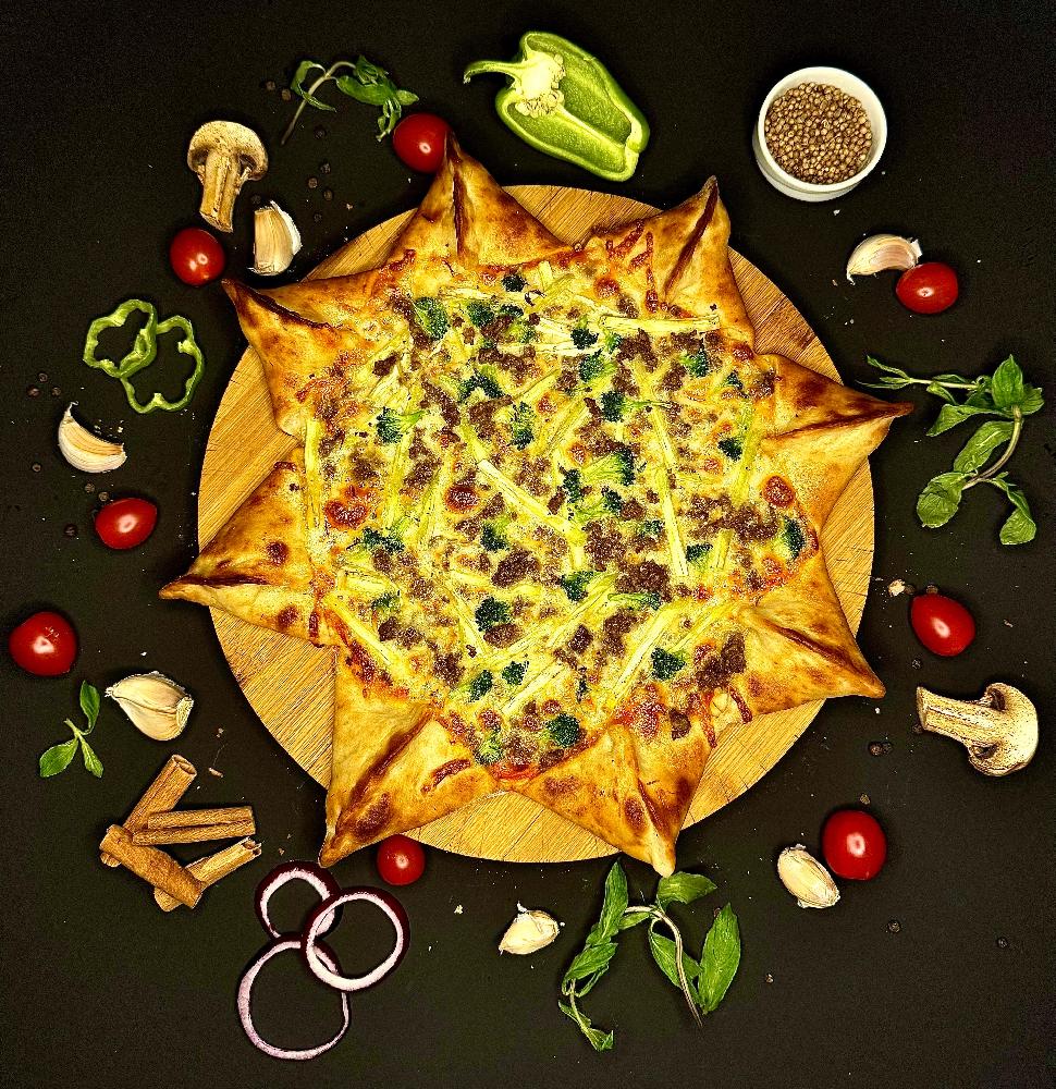 brokolli, ət, pendir, bibər rengli, pomidor, ...