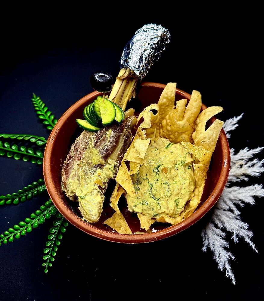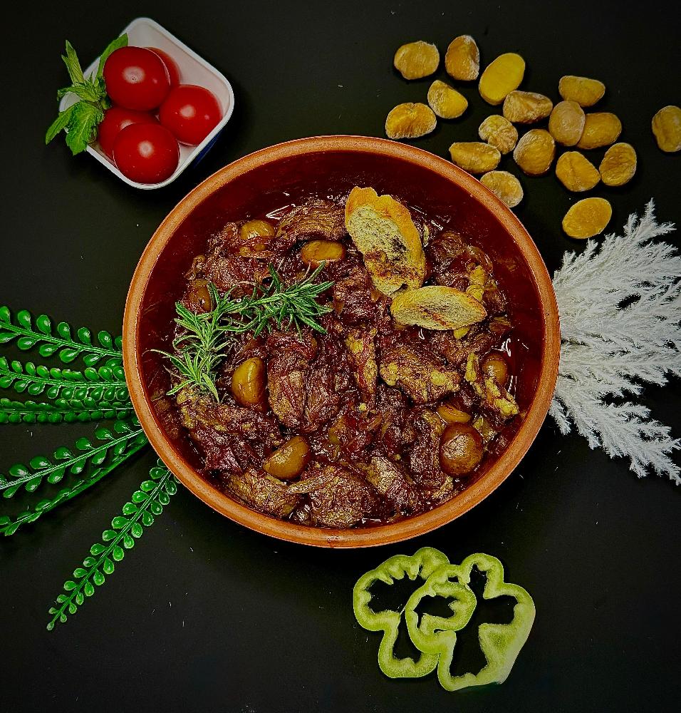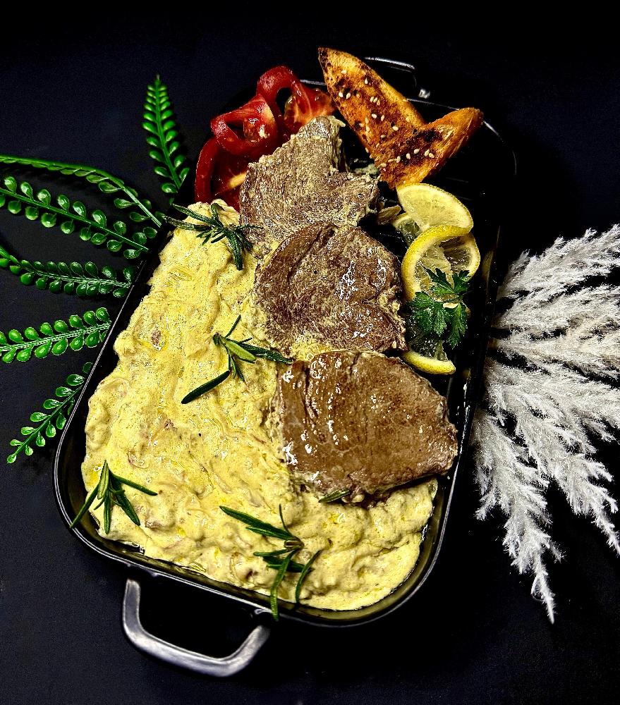 İSPANAQLI QAYMAQLI SOUSDA QUZU BALDIR QOVURMASI