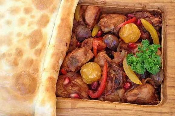 Xəmir, quzu əti, nar şirəsi, nar dənəsi, ...