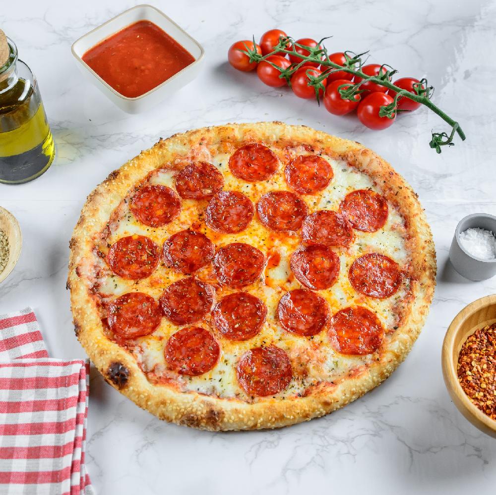 Aysberq, toyuq file, pomidor çerri, pizza sous...