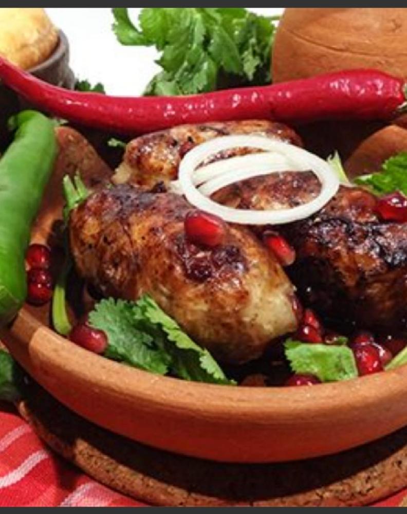 Quzu əti, qırmızı soğan, şabalıd, nar ş...