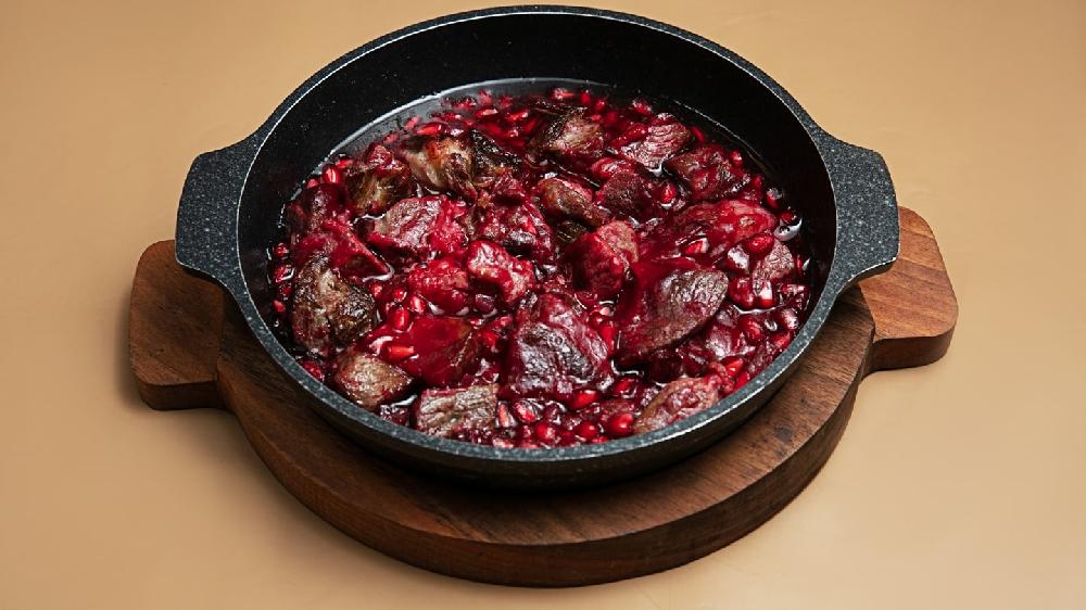 Dana əti, qırmızı soğan, şabalıd, nar ş...