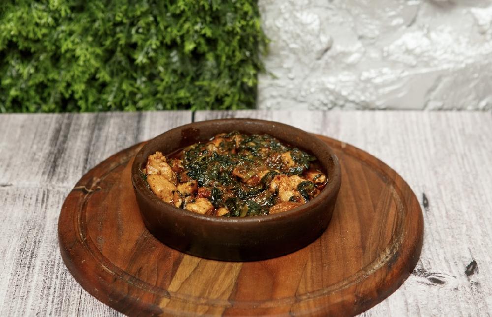 Toyuq, gavalı qurusu, sarımsaq, spanaq qovurm...