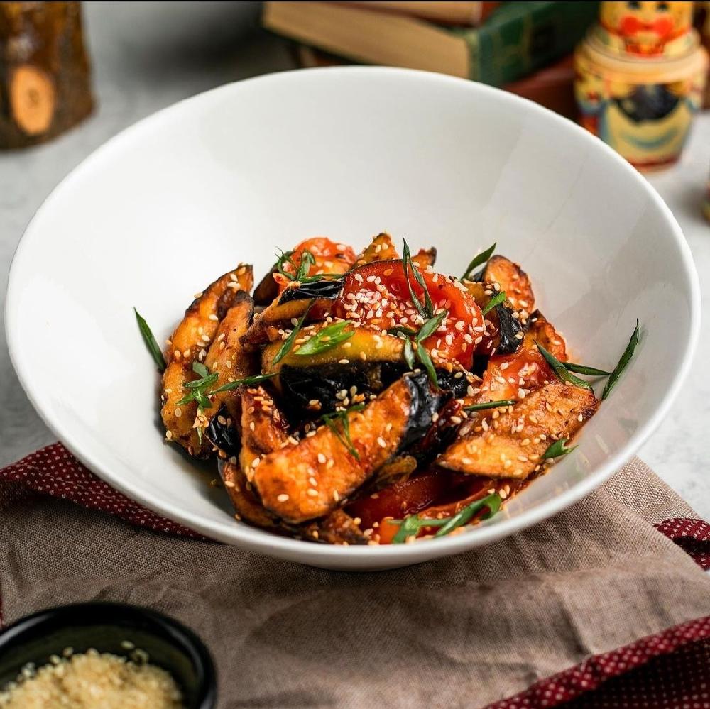 Badımcan, pomidor, göyərti, mamasita sous, s...