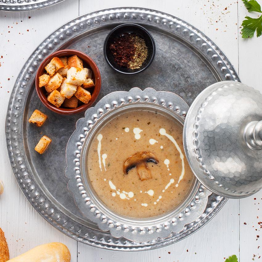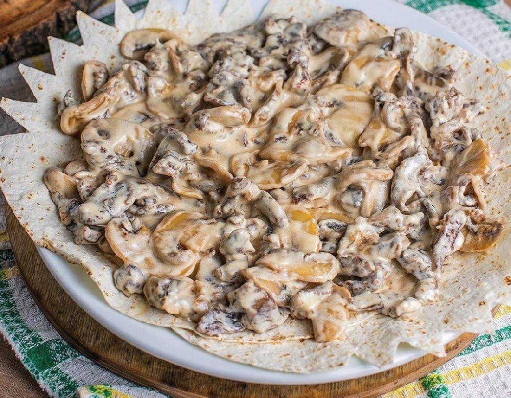 Göbələk, soğan, süd, qaymaq
