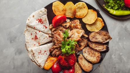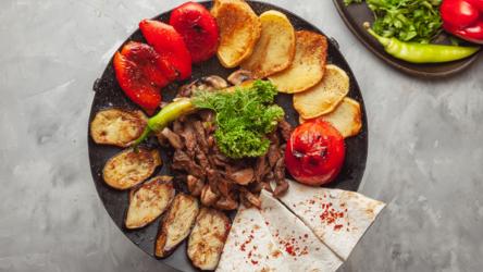 quzu əti, soğan, bibər, kartof, badımcan, p...