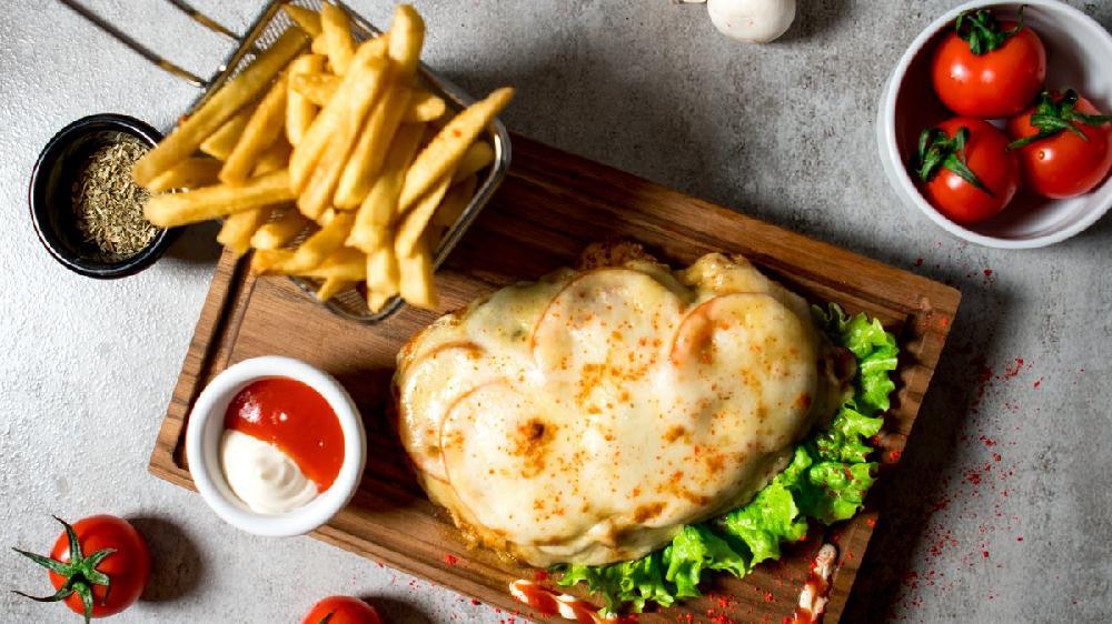 barbekü sous, ət, parmizan, qarğıdalı, br...