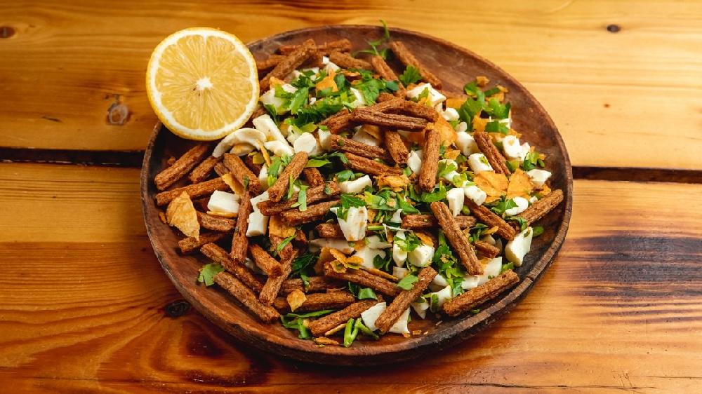 Qiymə, mozarella pendiri, cəfəri, limon
