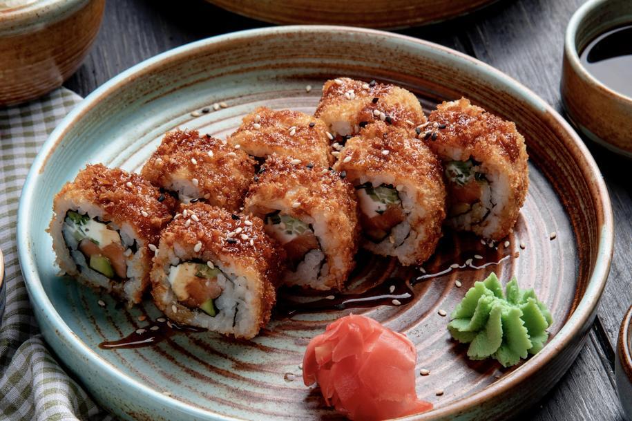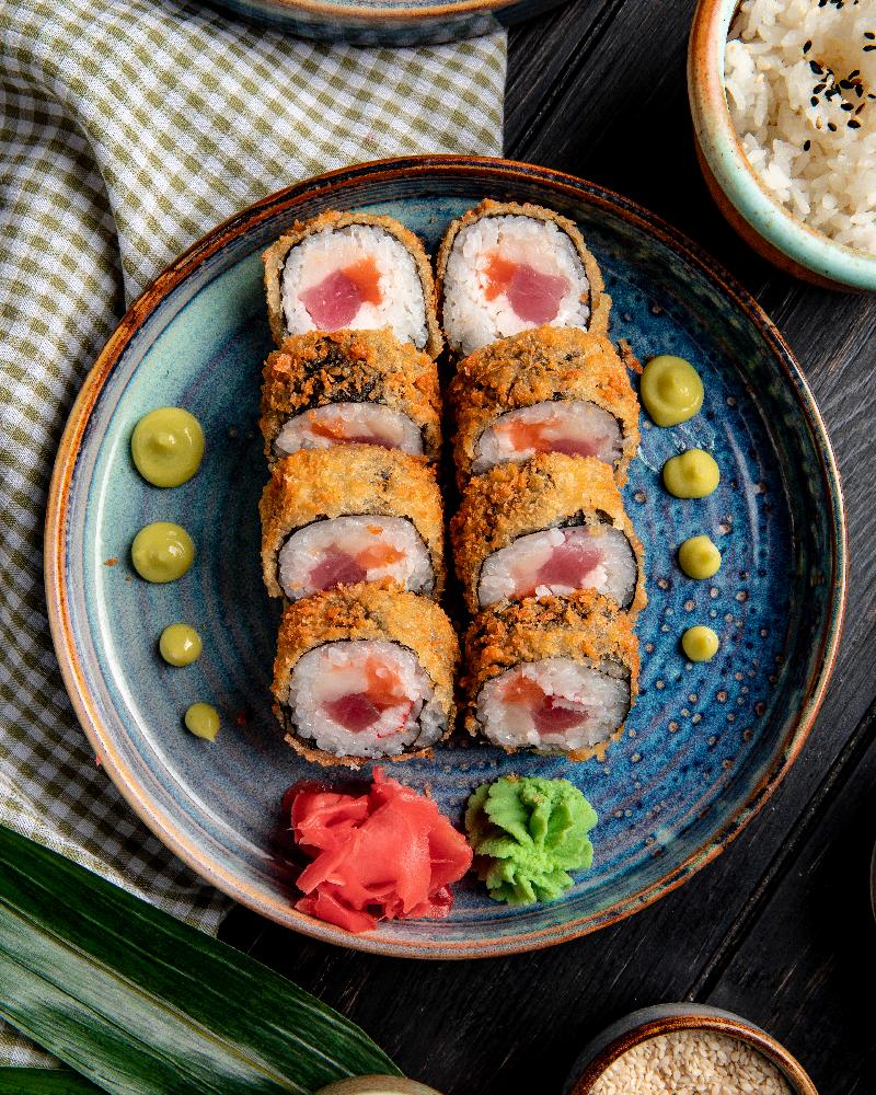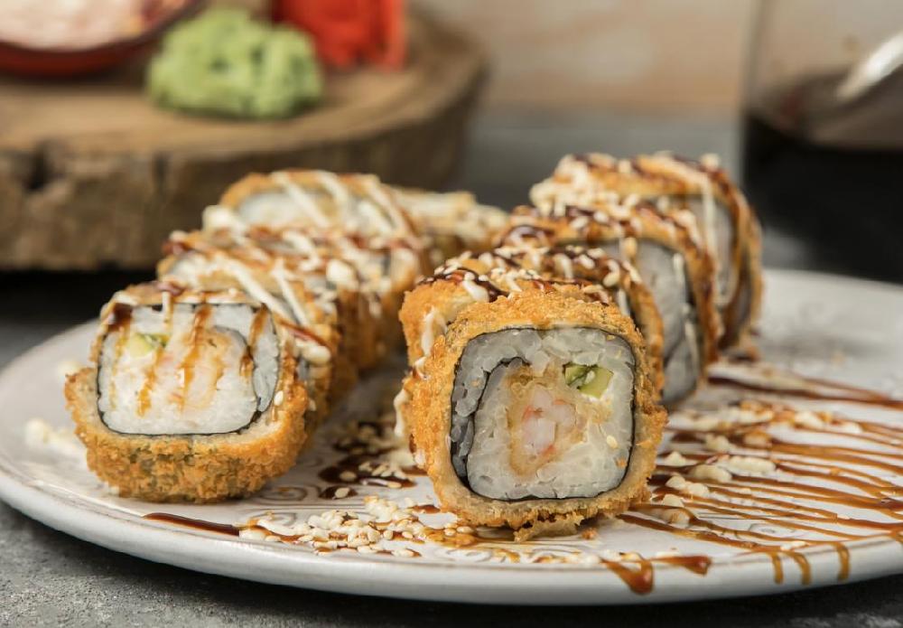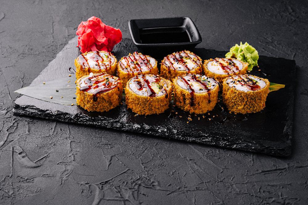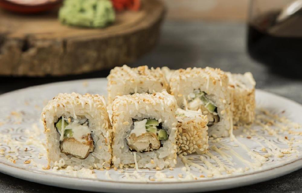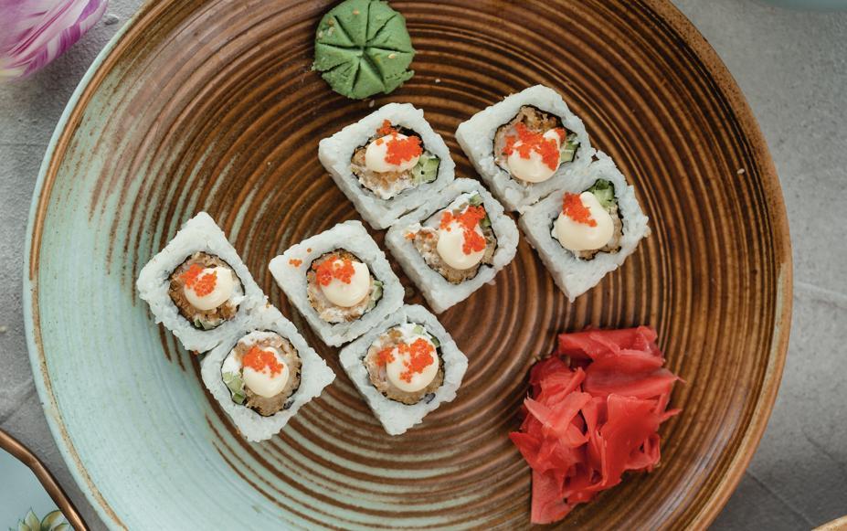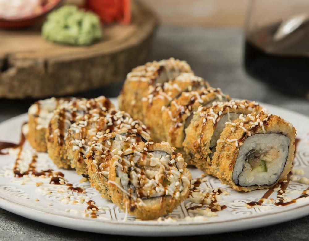 (Düyü, nori, xiyar, krab, panko üzəri unagi...
