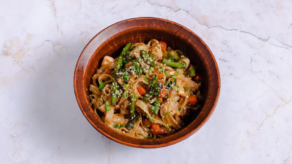 (Udon əriştəsi, toyuq filesi, kök, bibər, ...