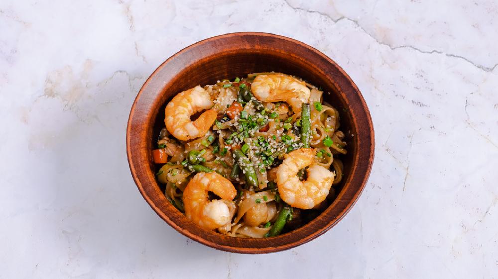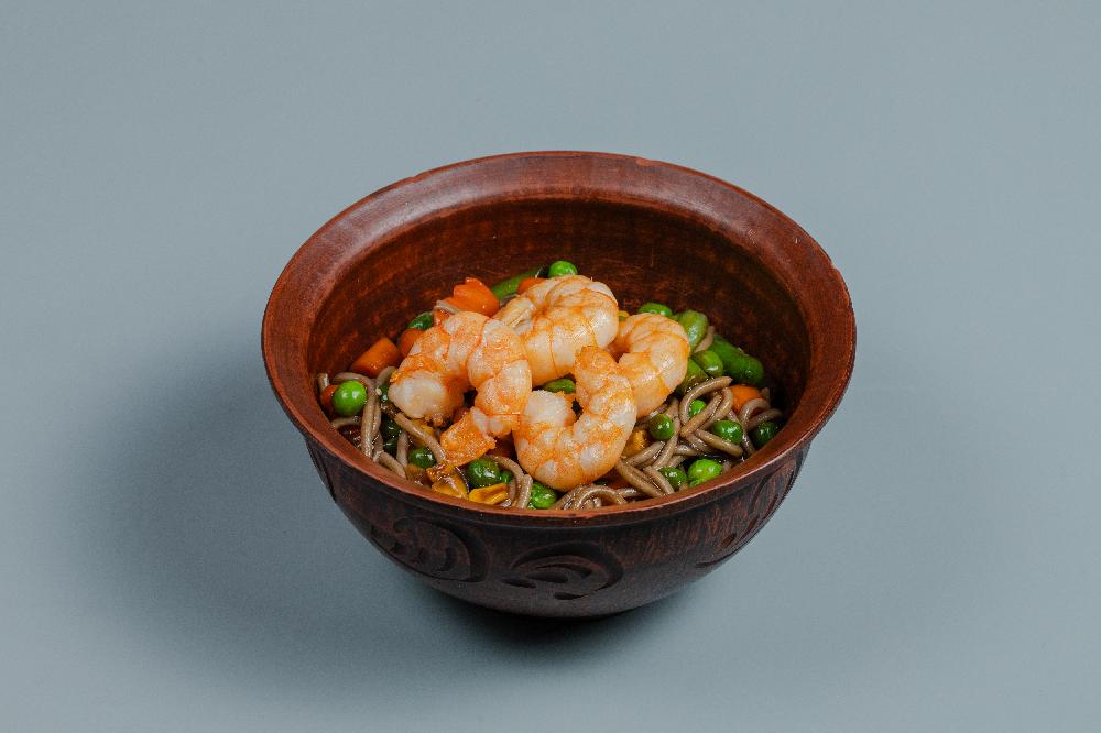 (Soba əriştəsi, krevetka, kök, bibər, soğ...