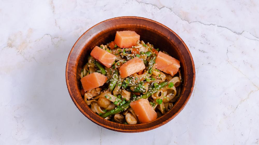 (Udon əriştəsi, qızılbalıq, kök, bibər,...
