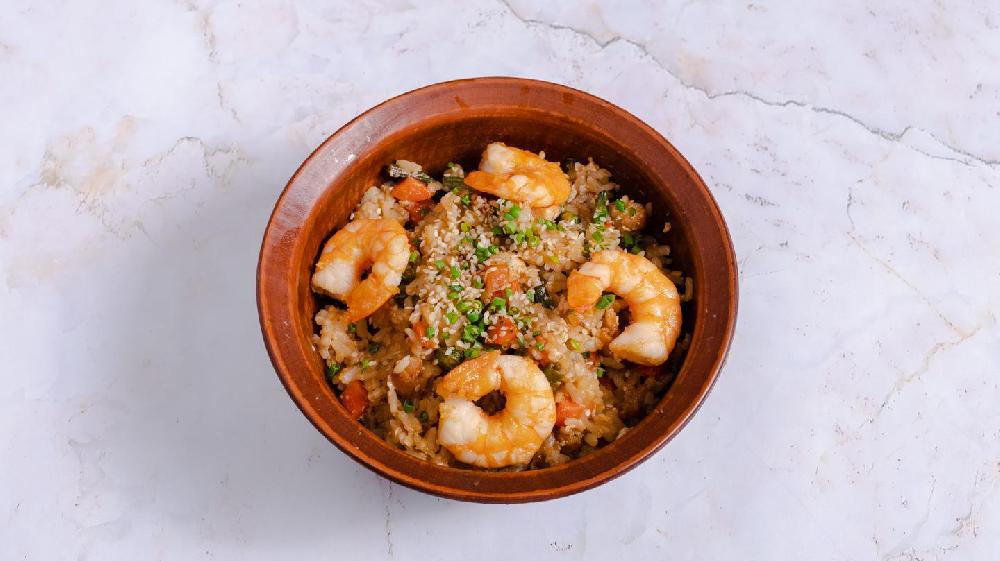 (Qızarmış düyü, krevetka, kök, bibər, so...