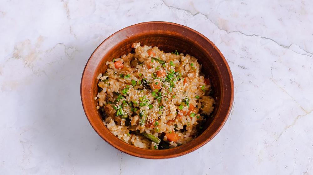 (Qızarmış düyü, toyuq filesi, kök, bibər...