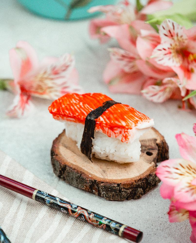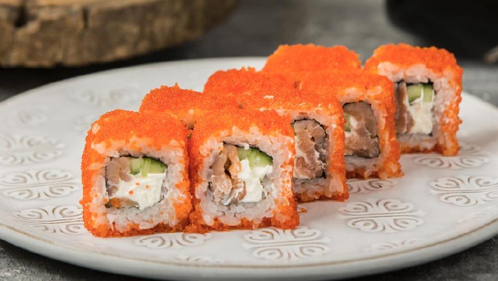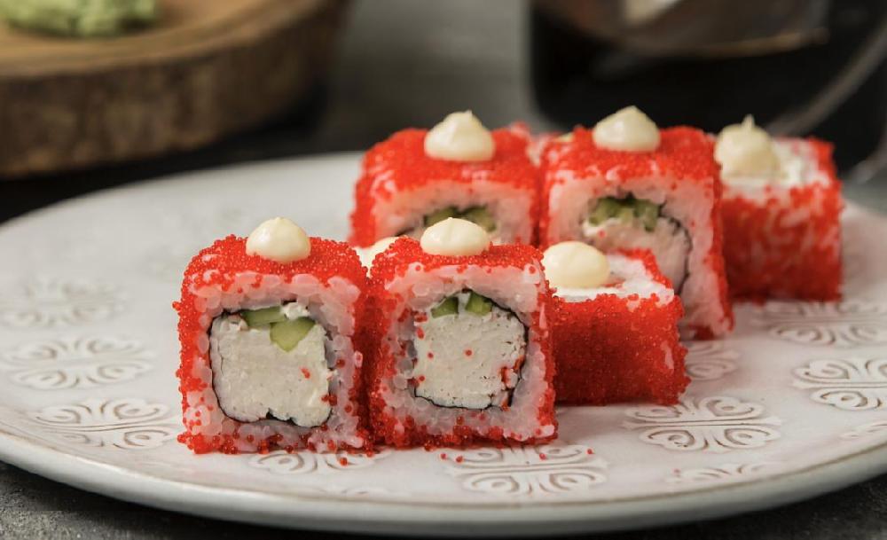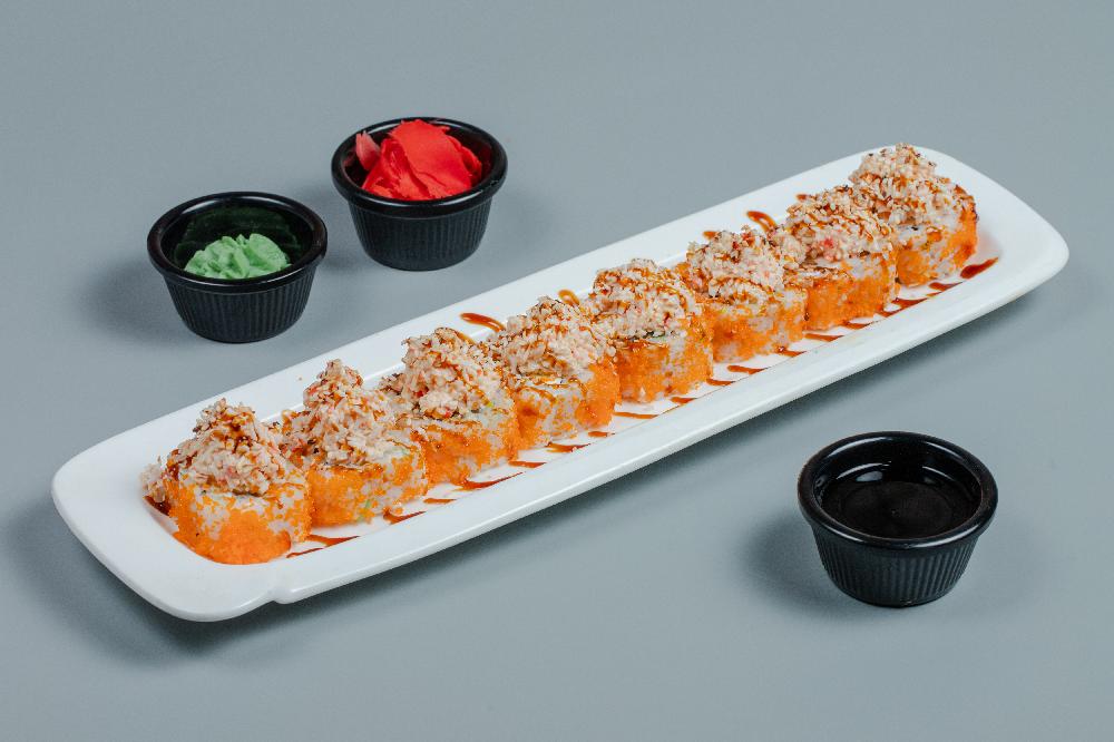 (Düyü, nori, xiyar, krab üzəri tobiko)