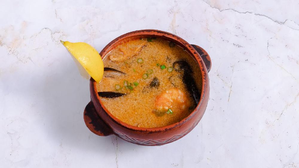 (Krevetka, kalmar, midye, tom yam pasta, qızı...