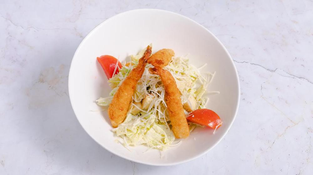 (Sezar sous, krevetka, çerri pomidor, suxari, ...