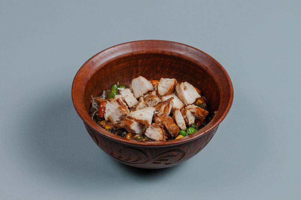 (Funçoza, toyuq filesi, kök, bibər, soğan, ...