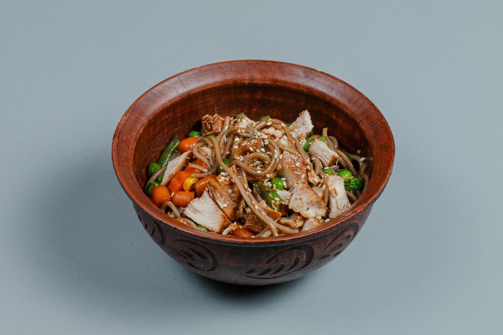 (Soba əriştəsi, toyuq filesi, kök, bibər, ...