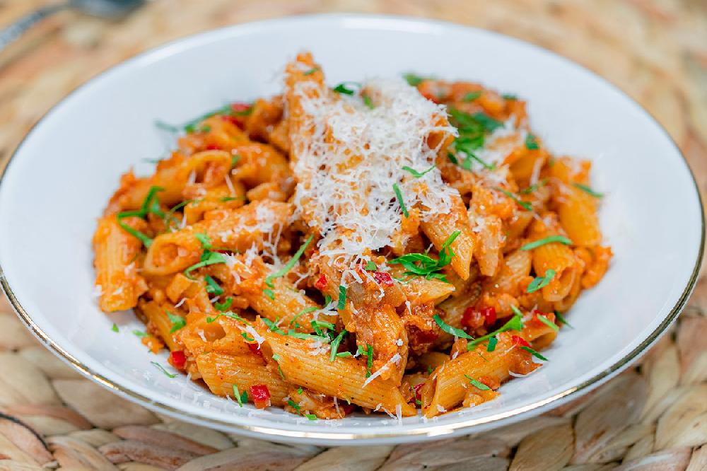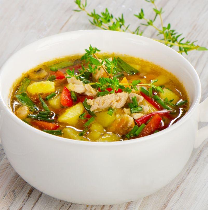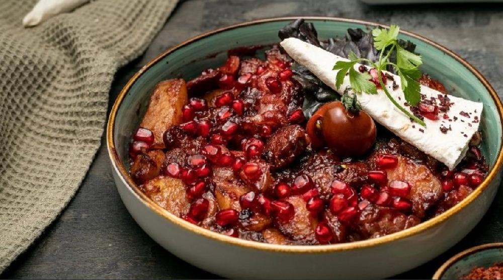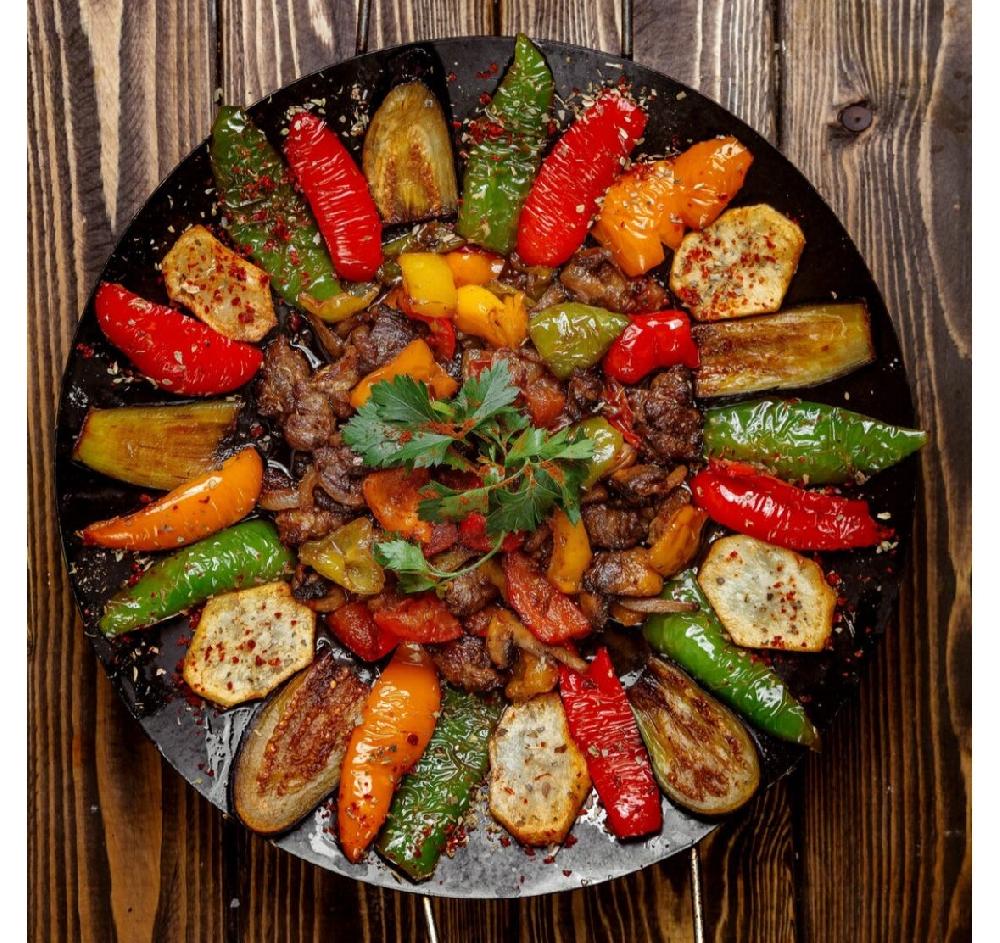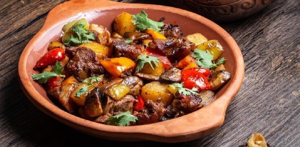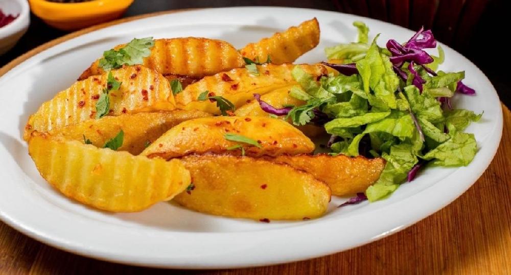 Sobada bişmiş kiçik kartoflar, rəngli bibərlər, soğan və xüsusi ədviyyatlar